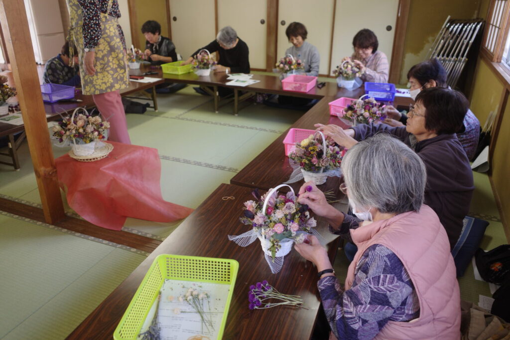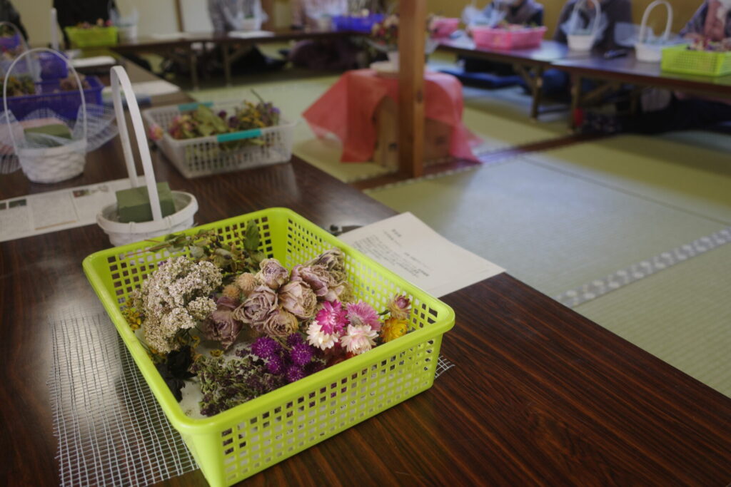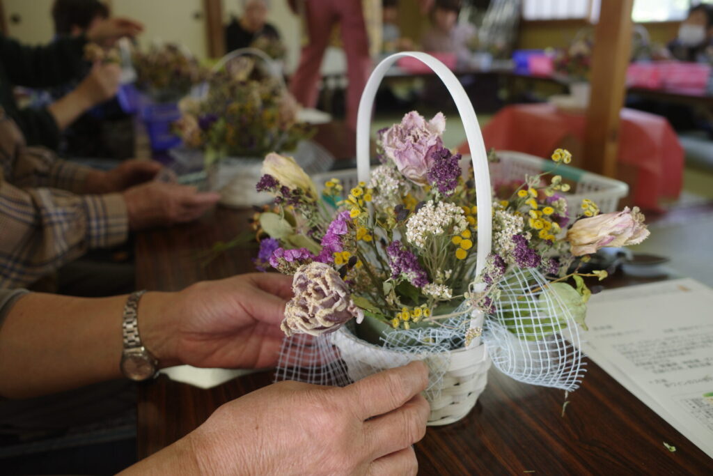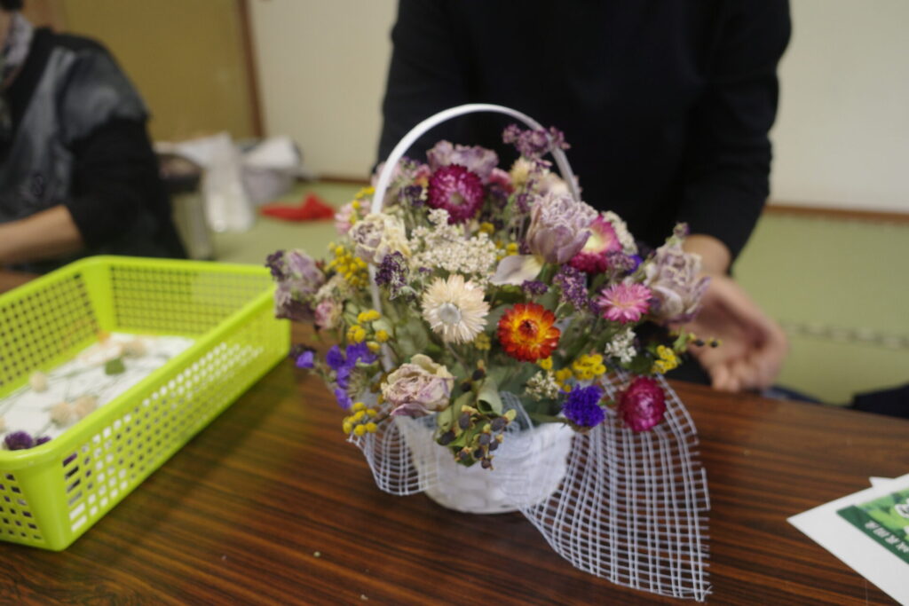 その後、公民館祭りでアレンジメントを完成品の展示してたところ「これは売っているんですか?」という声をたくさんいただきました。