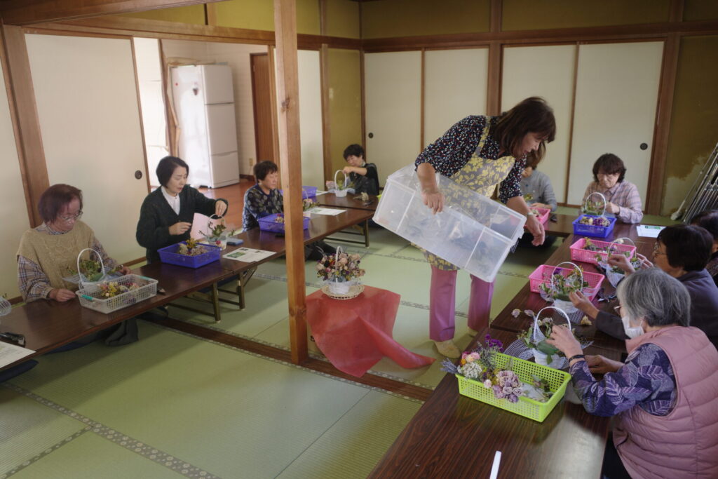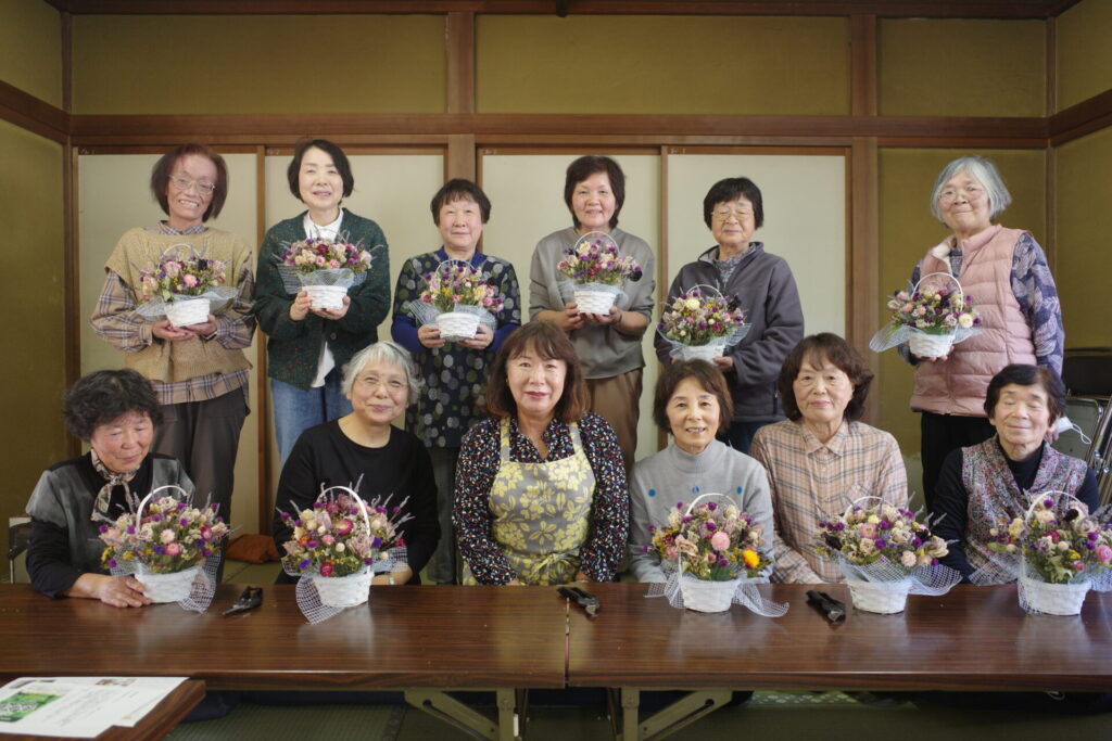 フローリアひなたのメンバー11名が集い、フラワーアレンジメント講習会が行われました。