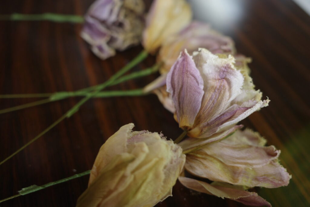 チューリップ<乙女のドレス>のドライフワラーも今城さんのお手製です。