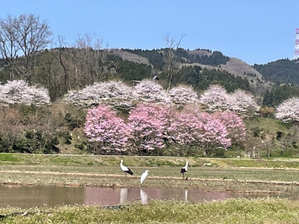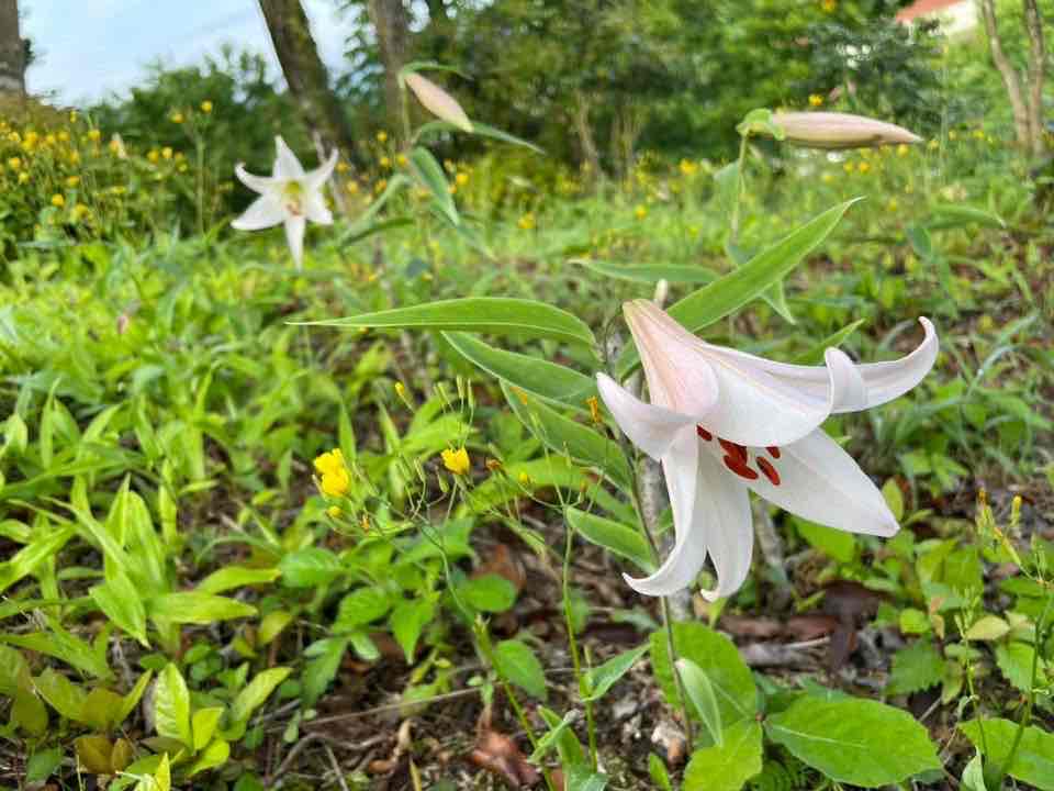 こんもりとした丘にはたくさんの花が咲き、速川地区の美しい田園風景を特徴づけています。